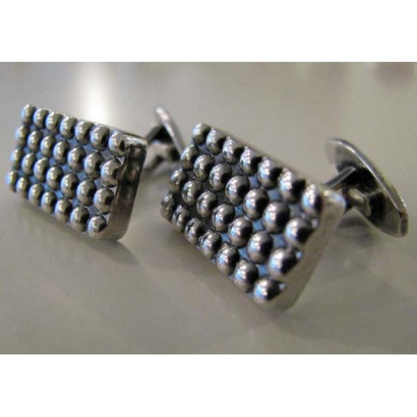 Hans Hansen, Kolding, Denmark Classic modernist cufflinks, rectangular sterling silver shape with a regular silver bead pattern