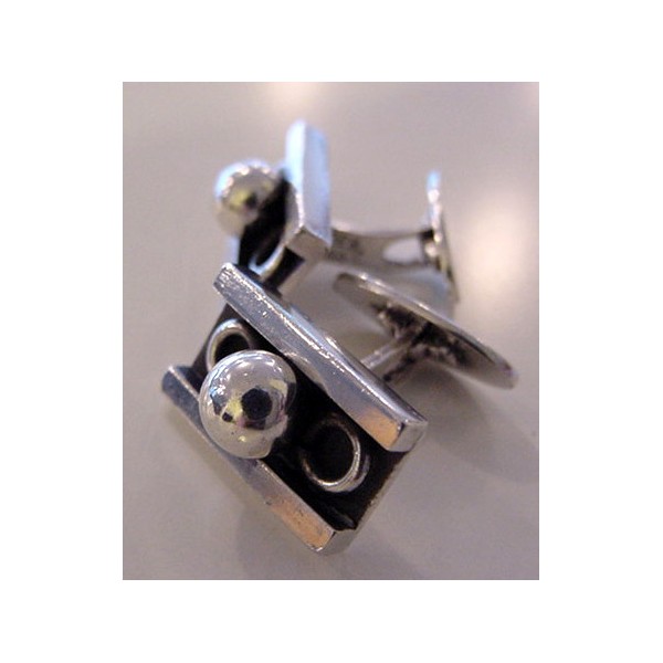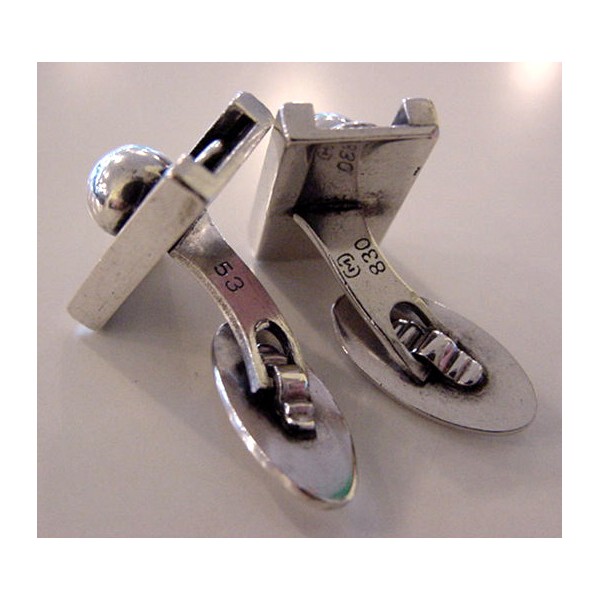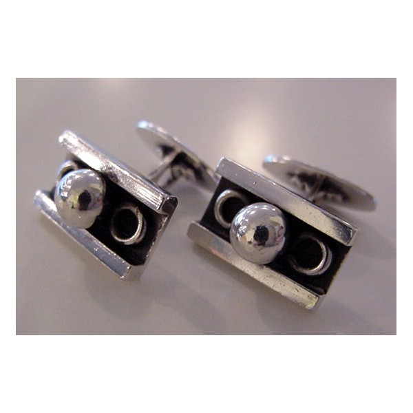 Carl Cohr, Denmark Funkie's style massive cufflinks: silver with black inlay + massive silver ball