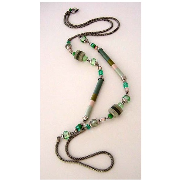 Langani, Germany Charleston necklace - fantasy of glass + ribbon