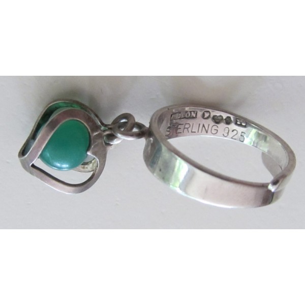 SOLD - Alton, Sweden Sweet ring with heart-shaped charm + chrysoprase ball inside