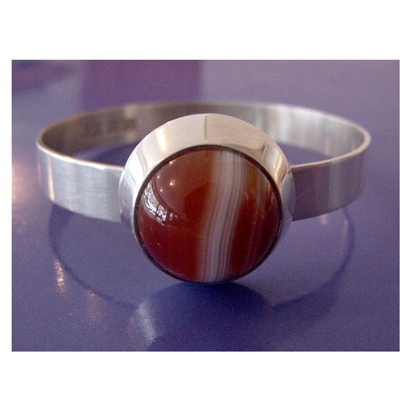 SOLD - Sweden, 1960ies - Atelier Lindström Wonderful orange agate - great silver cuff bracelet with huge cabochon