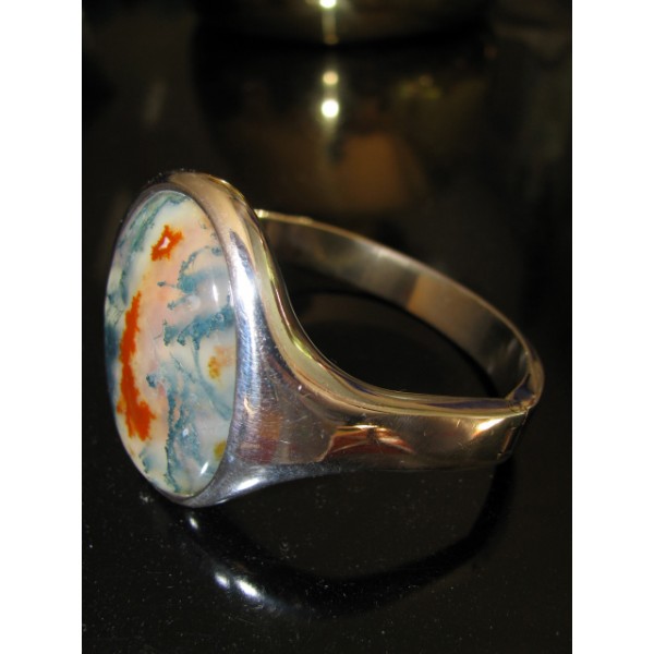 - SOLD - Franz Scheuerle, Donaueschingen, Germany Wonderful oval moss agate plate - great massive silver cuff bracelet with huge cabochon