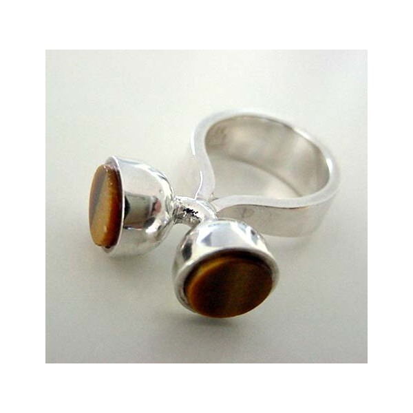 SOLD - Arne Johansen, Roskilde, Denmark Outstanding RING, sterling silver with huge tiger's eye twin top