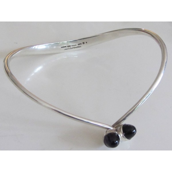 - SOLD - Bent + Anni Knudsen, Copenhagen, Denmark: Solid + well-crafted sterling silver neck collar with 2 amethyst s