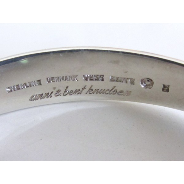 Bent + Anni Knudsen, Copenhagen, Denmark: Solid + well-crafted sterling silver neck collar with 2 amethyst cabochons on the lock. Design appr. 1970s, signed respectively; 12.1 cm in diameter + diagonale. Depth of stone in bezel is 1.3 cm, width of neck collar back 1.3 cm (1“=2.54 cm)