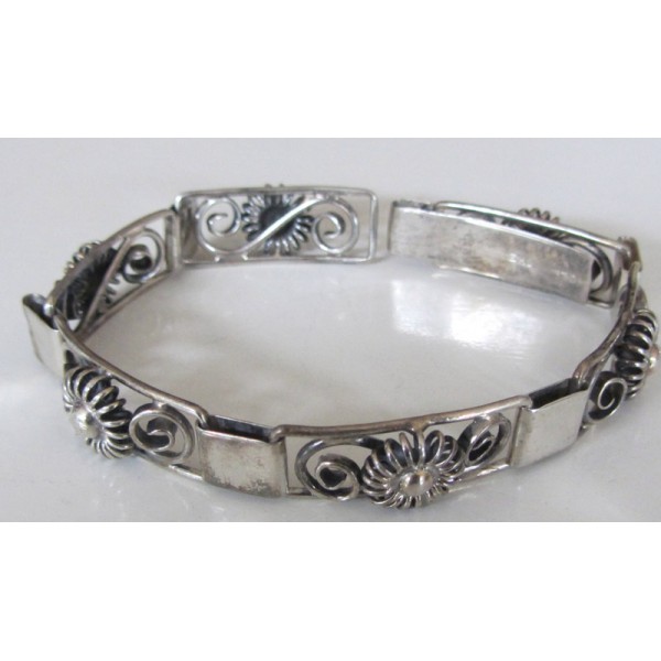 Elegant Scandinavian "Jugend" bracelet: floral pattern! Signed 830/EHJ