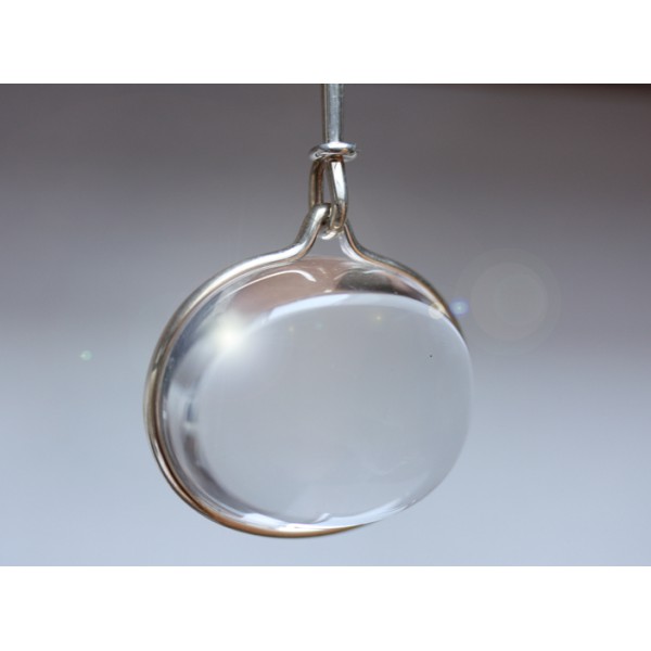 The sterling silver neckring (#410) can also be worn with any other pendant. Included here is the matching pendant (#311) in clear rock crystal (Rutil Quartz) signed respectively. From the dew drop series.